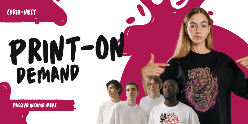One of the first passive income methods I tried was print-on-demand when I was 16 years old, and it turned out to be a great starting point. The idea is simple: you create a design, upload it to products like T-shirts, mugs, or phone cases, and whenever someone buys, the platform prints and ships it for you. You don’t handle stock or delivery……. the company does everything for you!